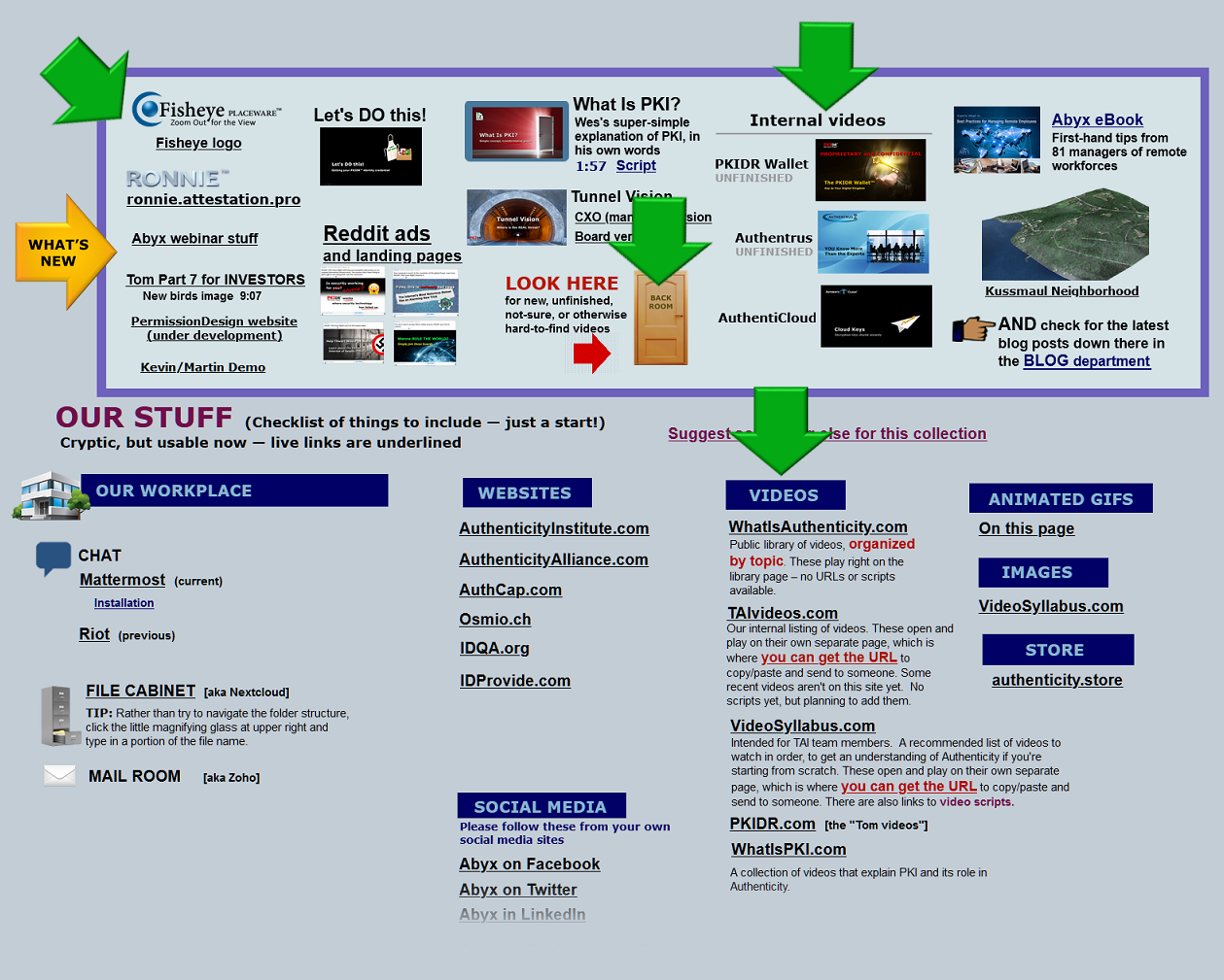 Confidential or other videos not for the public are in the "Internal videos" list in the WHAT'S NEW box. Ask Suzanne, Wes, or John if the video asks for a password.