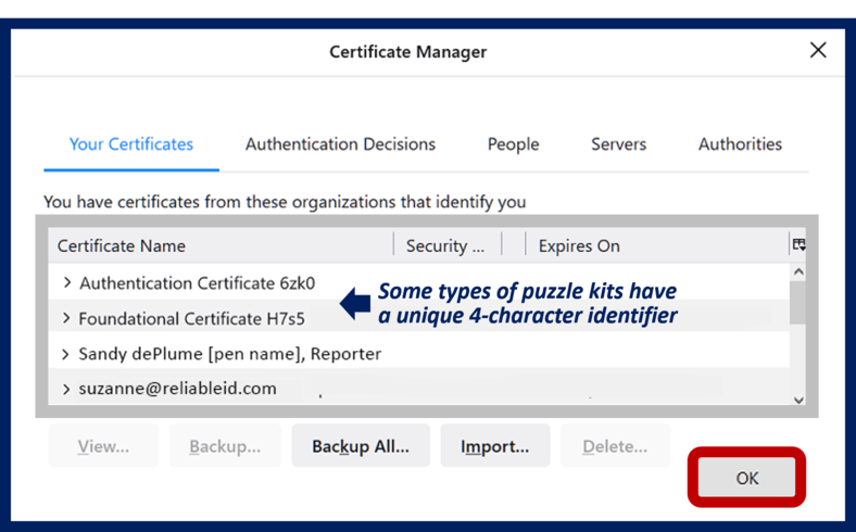 On Windows 10 with Firefox browser (what you're using now) the secure import place for puzzle kits is the Firefox "keystore."
