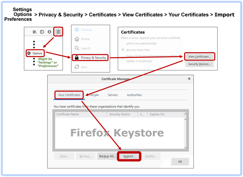 Firefox P12 import path